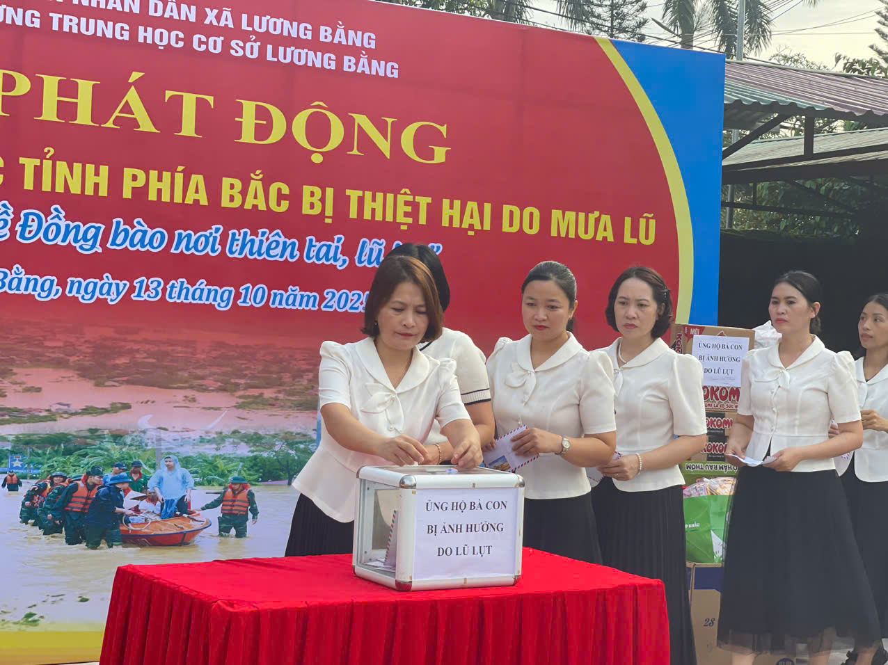 🏠 Thực hiện Công văn số 26/MTTQ-BTT ngày 06/10/2025 của Ủy ban MTTQ Việt Nam xã Lương Bằng về việc ủng hộ người dân bị thiệt hại do bão số 10 (Bualoi) gây ra. Sáng ngày 13/10/2025, Trường THCS Lương Bằng đã tổ chức lễ phát động quyên góp ủng hộ đồng bào vùng thiên tai, lũ lụt.