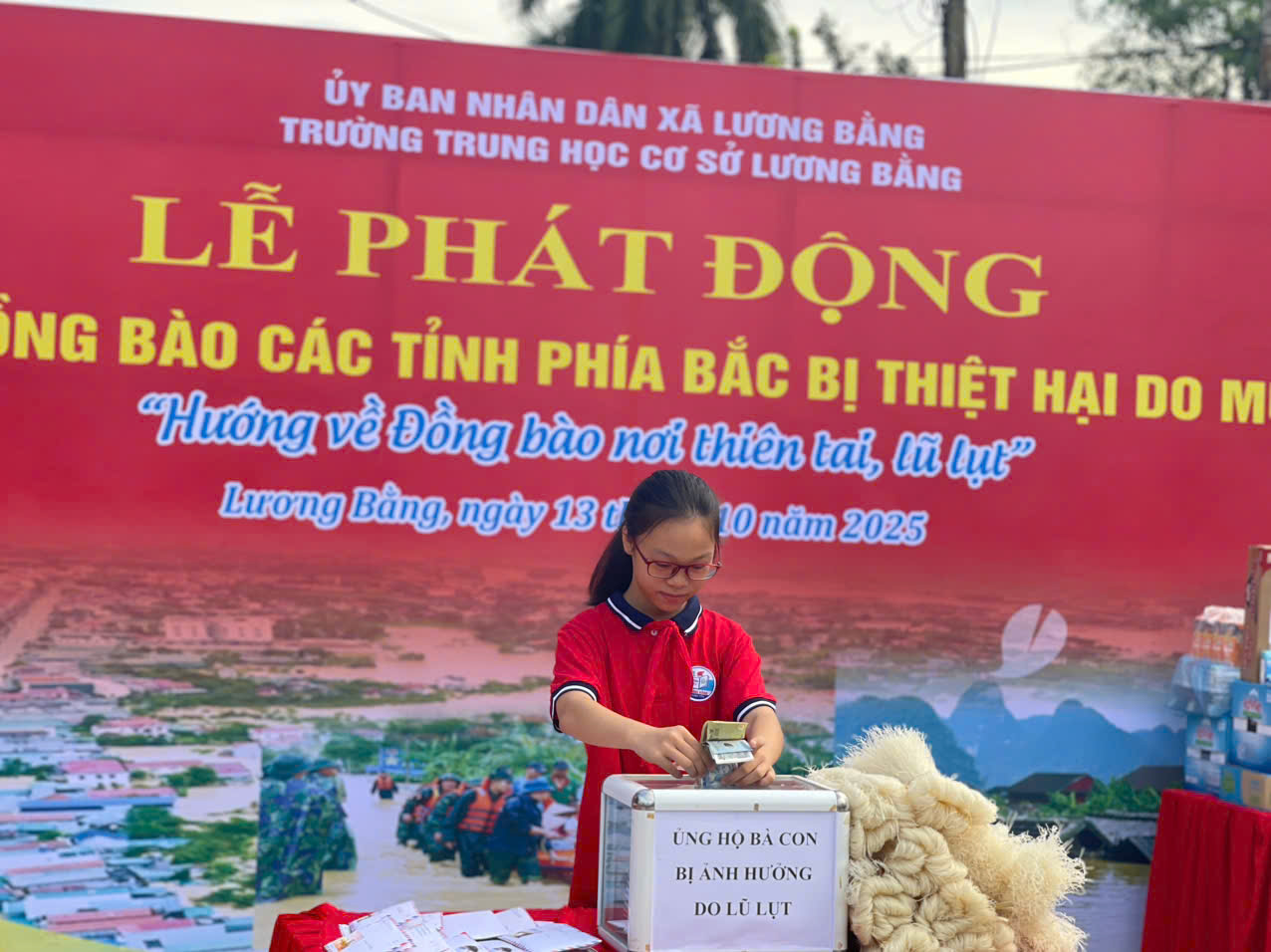 Hình ảnh thầy và trò Trường THCS Lương Bằng cùng chung tay “Hướng về đồng bào miền thiên tai, lũ lụt” đã gửi đi thông điệp mạnh mẽ về tình đoàn kết và lòng nhân ái của con người Việt Nam, khẳng định rằng dù ở đâu, người Việt Nam cũng luôn sẵn sàng sẻ chia, giúp đỡ nhau trong hoạn nạn.