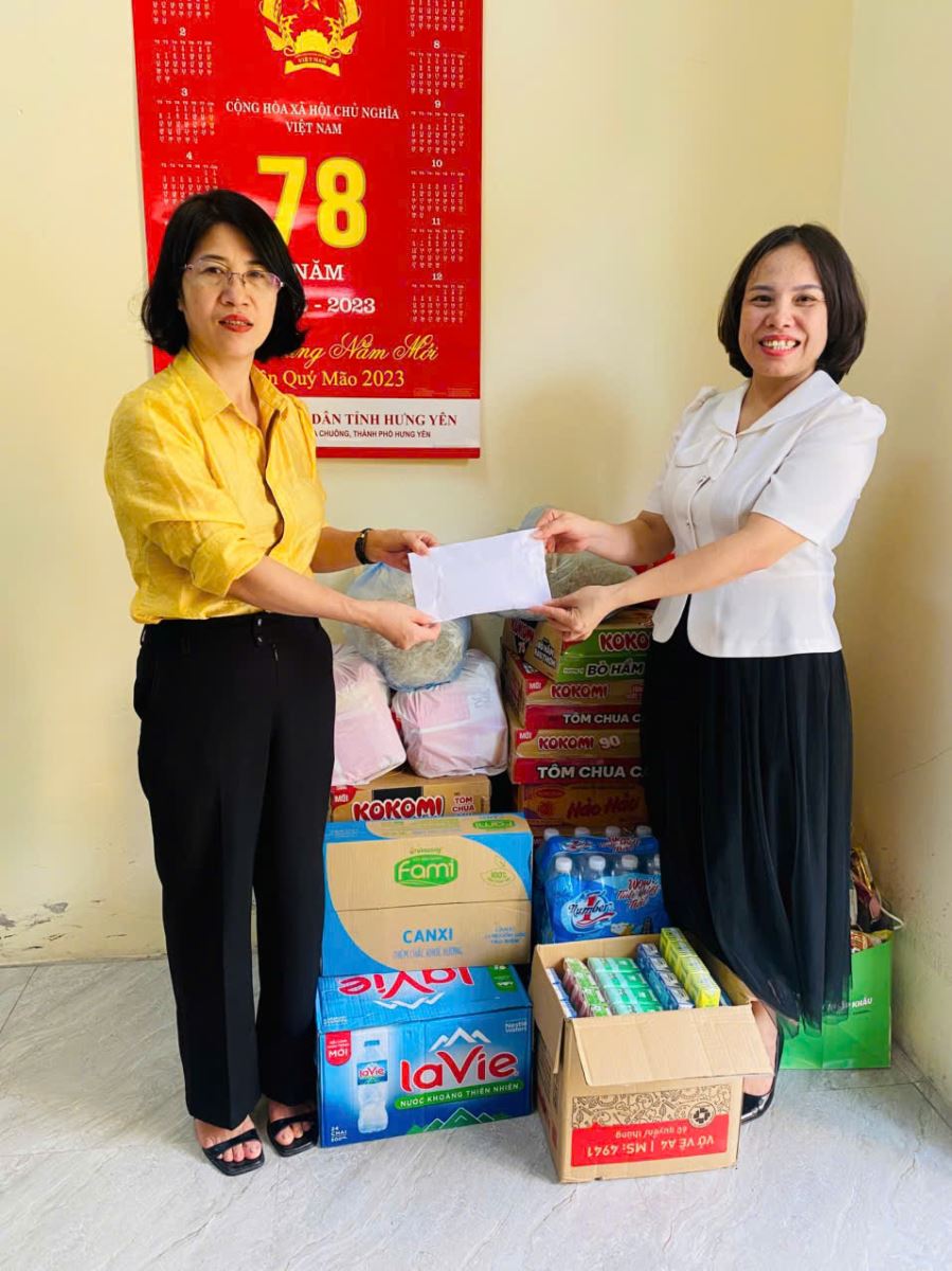Tại buổi lễ, các đồng chí lãnh đạo đã cùng, tập thể thầy và trò nhà trường phát động, quyên góp ủng hộ được trên 23 triệu đồng tiền mặt, cùng nhiều nhu yếu phẩm thiết yếu (gồm 14 thùng mì tôm, 4 thùng nước, 3 thùng sữa, 10 gói bánh gạo, 6 kg mì gạo) với tổng trị giá gần 27 triệu đồng.